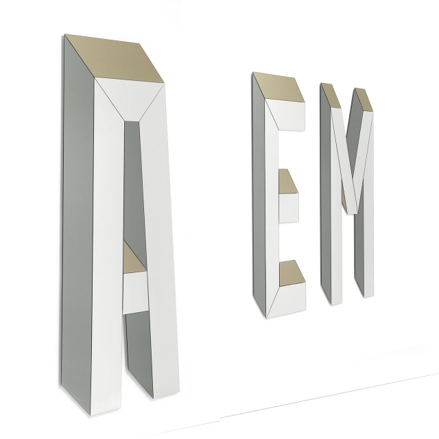 Letteronza è una collezione di specchi a parete di tutte le lettere dell’alfabeto in veste decorativa, con accenti vintage, classici e moderni. Disponibile in due altezza, H 110 cm e H 200.